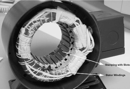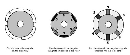 BLDC定子是由許多硅鋼片經過疊壓和軸向沖壓而成,每個沖槽內都有一定的線圈組成了繞組,可以參見下圖。從傳統意義上講,BLDC的定子和感應電機的定子有點類似,不過在定子繞組的分布上有一定的差別。大多數的BLDC定子有3個呈星行排列的繞組,每個繞組又由許多內部結合的鋼片按照一定的方式組成,偶數個繞組分布在定子的周圍組成了偶數個磁極。